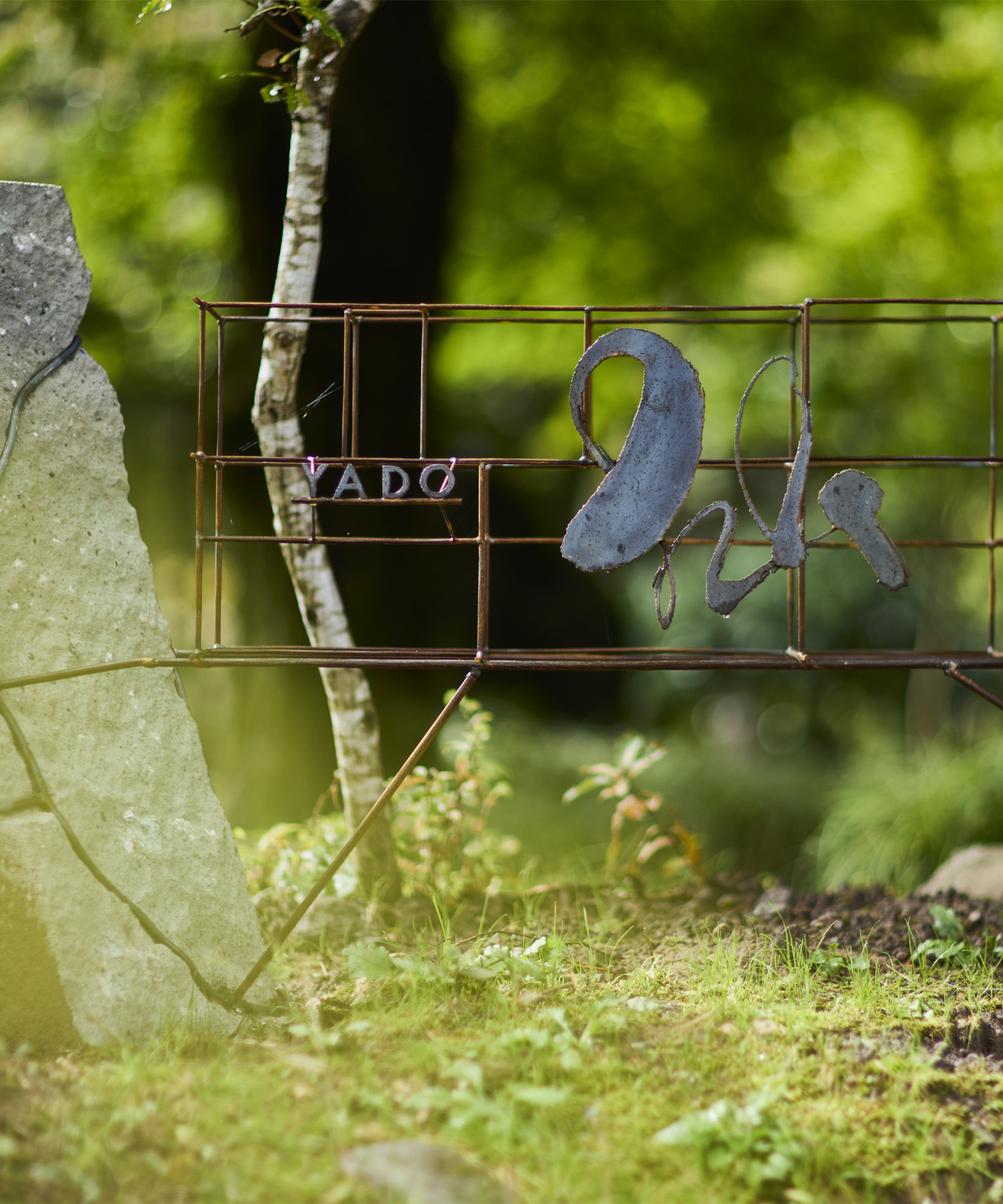 「仙」の文字は書家・土居佑治によるもの。エントランスは鉄職人・酢馬慶太のサインを目印としています。施設内の食器や酒器には九谷焼など地元作家の作品を多く使用。作家の手仕事が息づく空間で、どうぞこの地の美にふれてみてください。