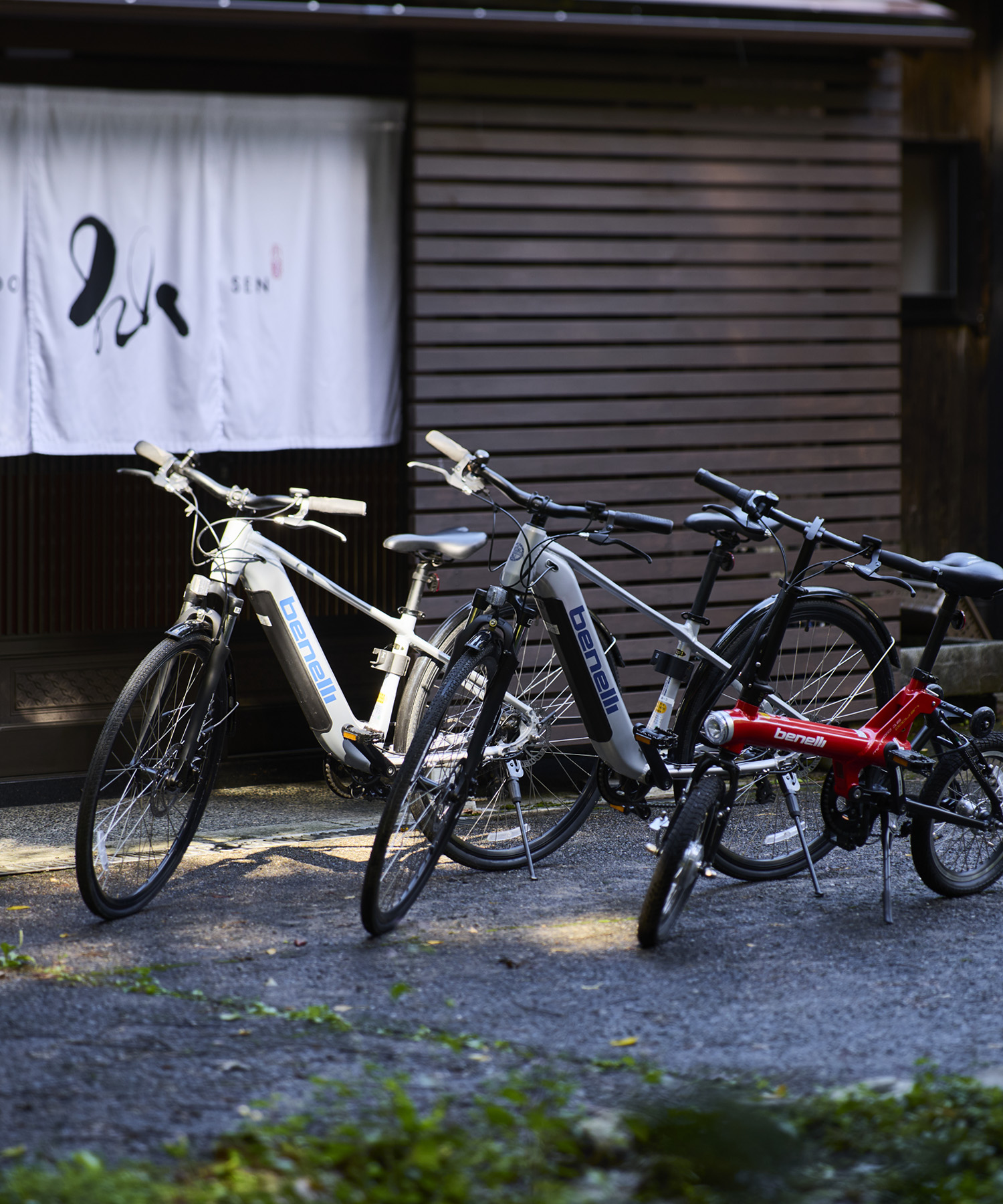 山間部でも快適に移動できる電動アシスト付き自転車をご用意。