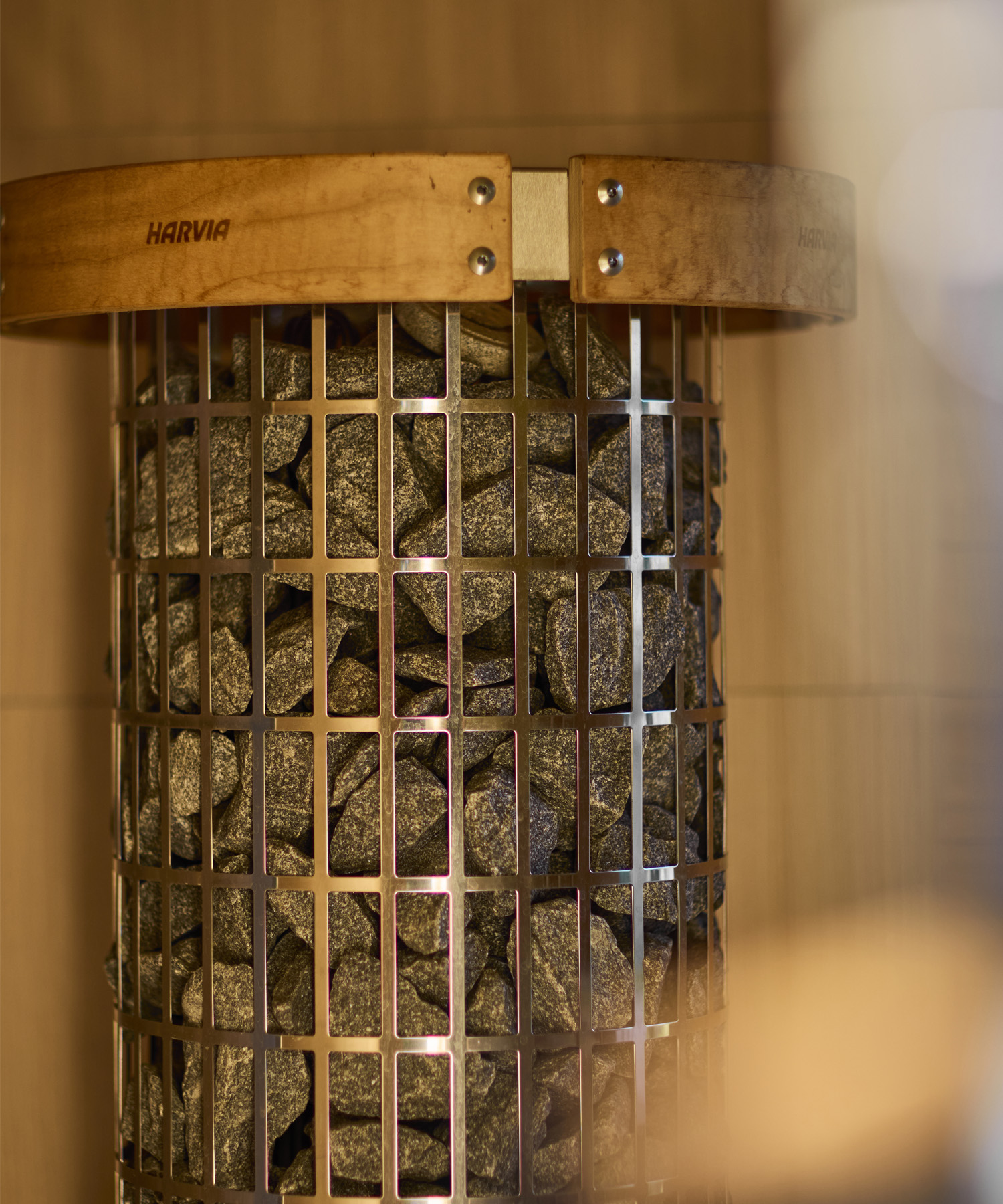 Relax around the sunken hearth. Feel the murmur of the river in the sauna.